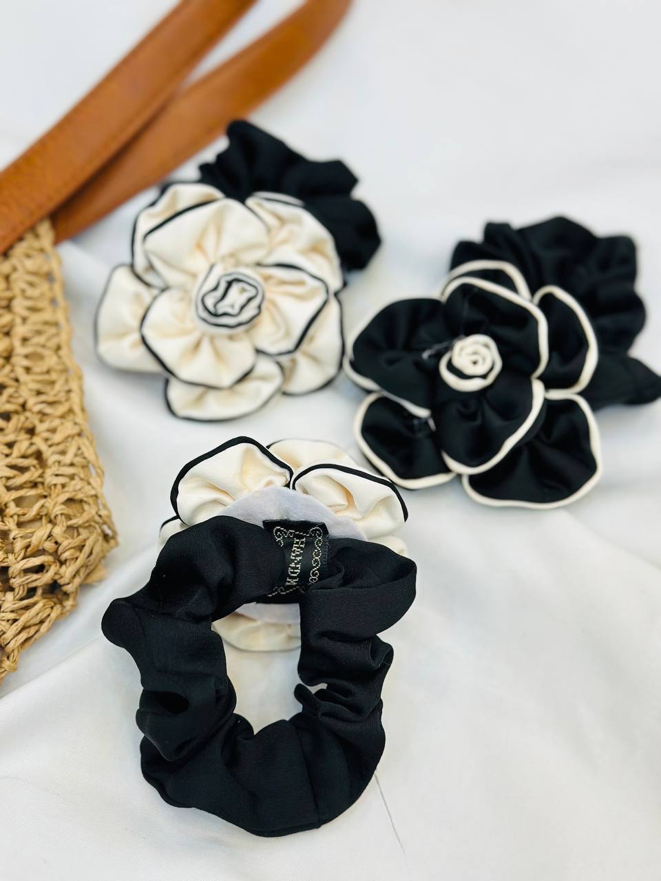 دور رنگ مشکی و کرم گل برجسته و سه بعدی